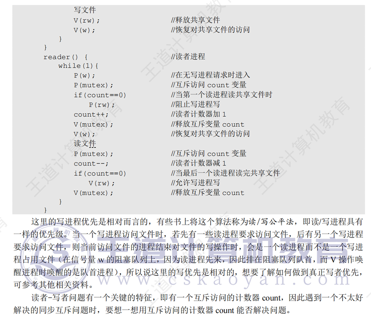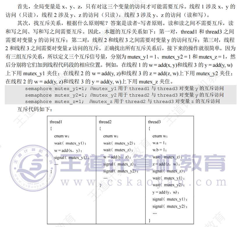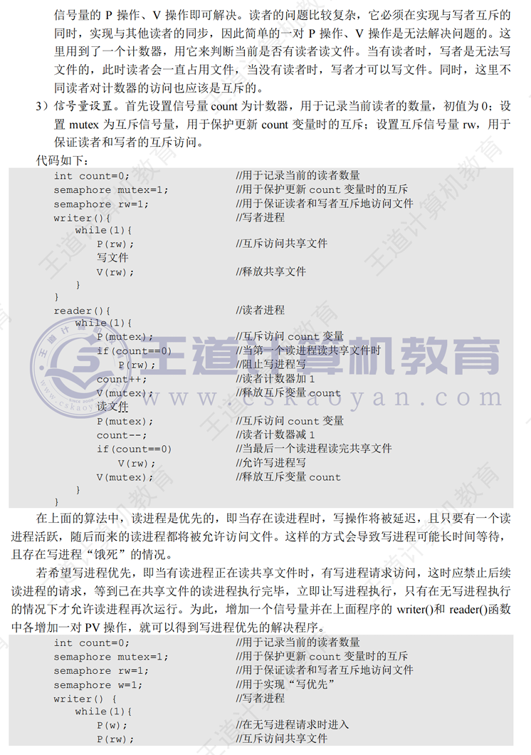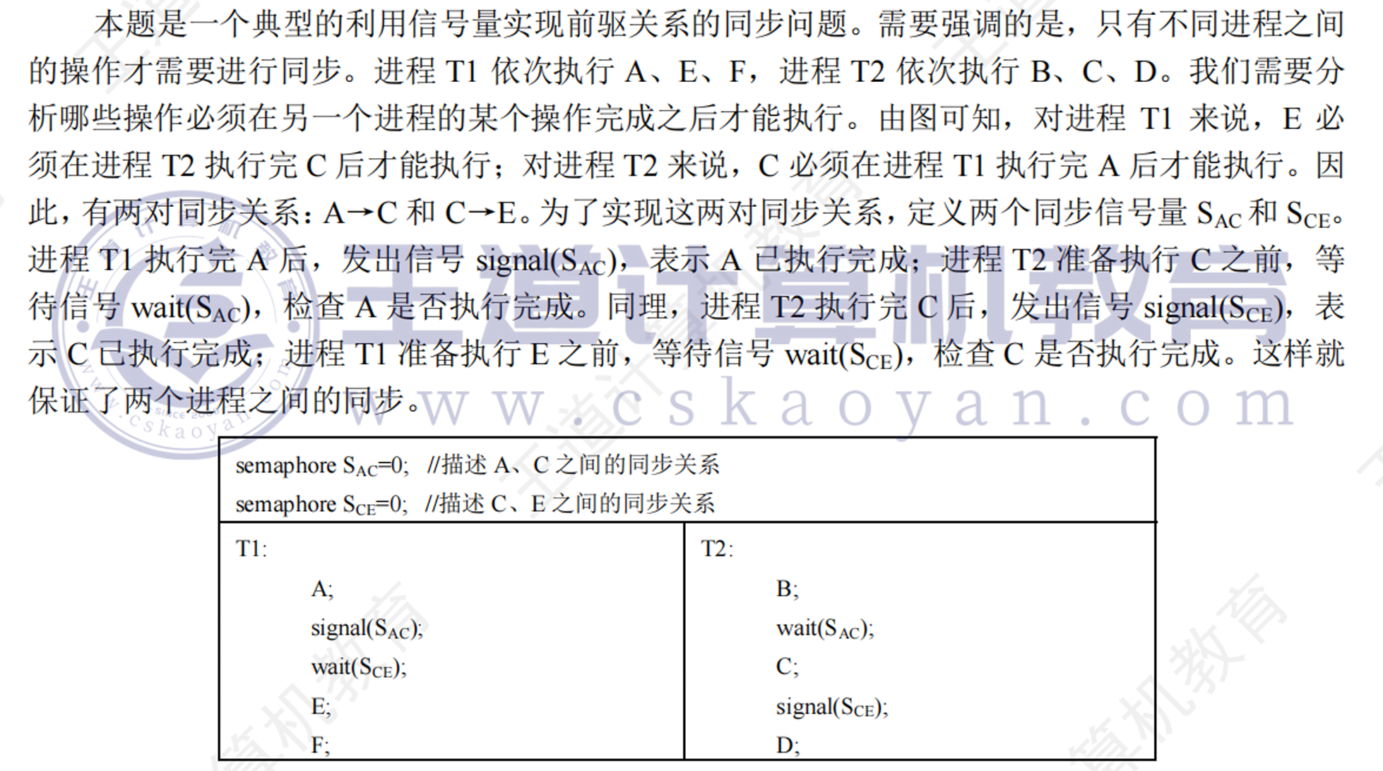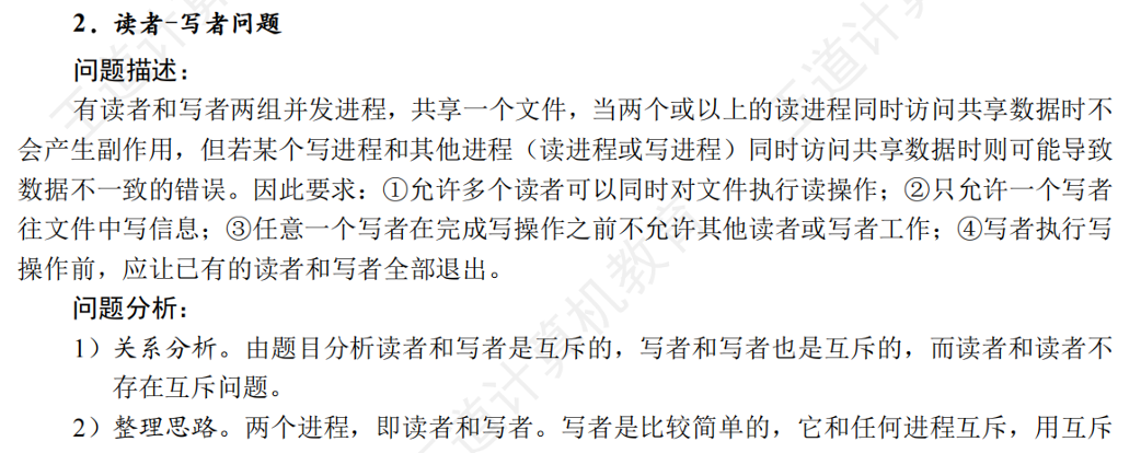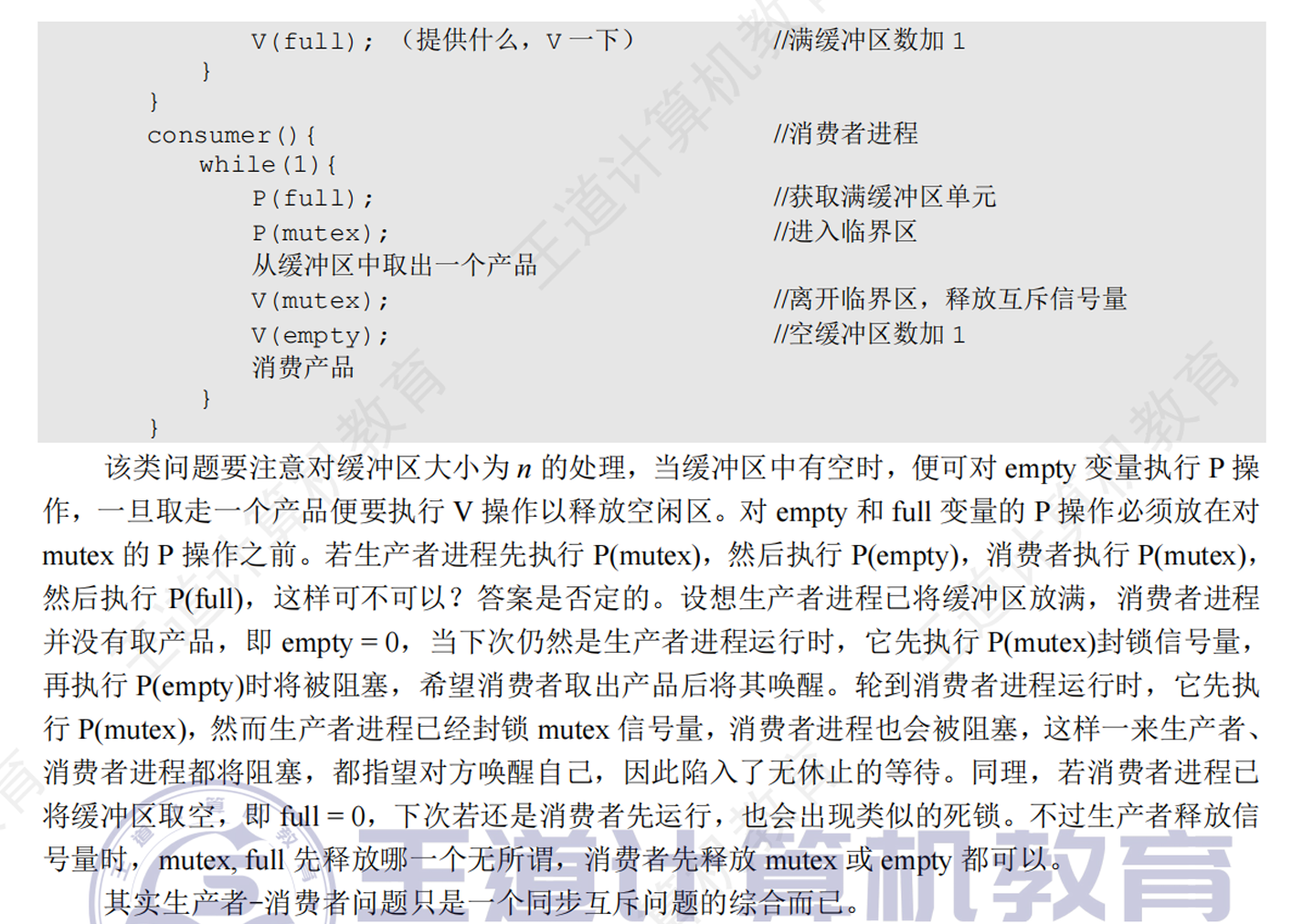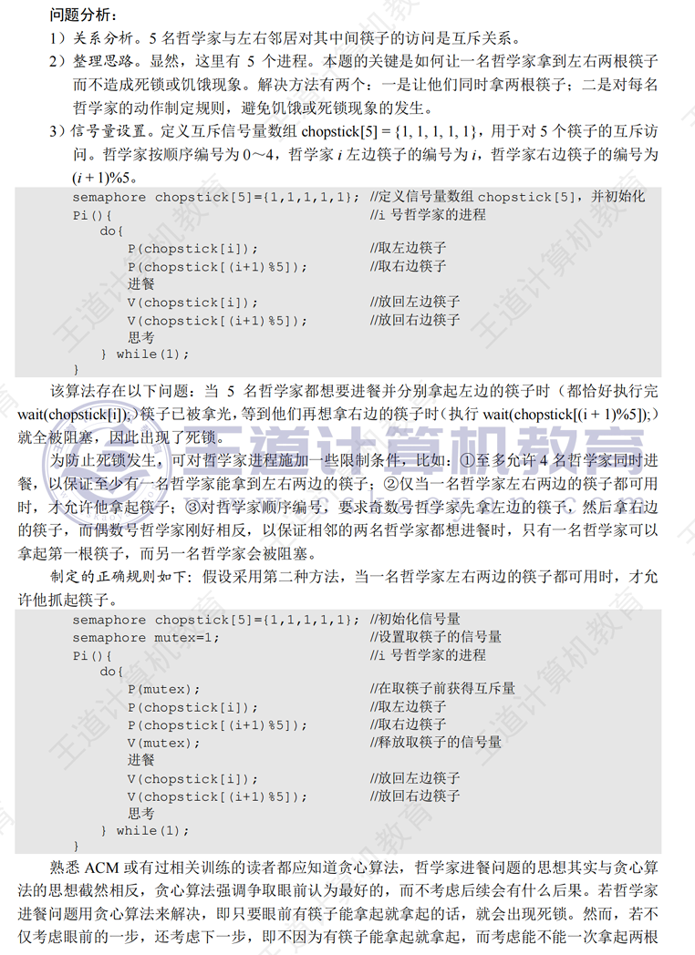 ②本题易错选 C,阻塞队列有n-1个进程是可能发生的,但不是最多的情况。不少读者会忽略死锁的情况,死锁就是n个进程都被阻塞,因此阻塞队列最多可以有n个进程。