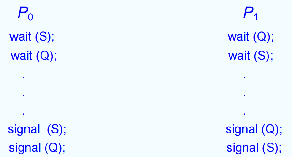 Starvation – indefinite blocking. A process may never be removed from the semaphore queue in which it is suspended.
