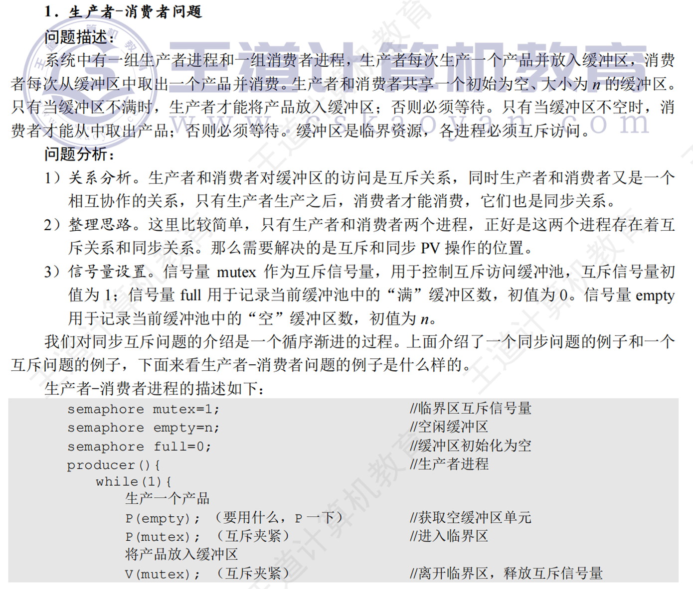 假设有一组缓冲区,生产者负责生产数据并放入缓冲区,消费者负责取出数据并消费。用一个整数变量 count 记录当前已填满的缓冲区数量。