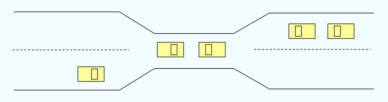 如果桥上车辆只允许单向通行,多个车辆同时进入不同段,互相等待对方让路,就会死锁。