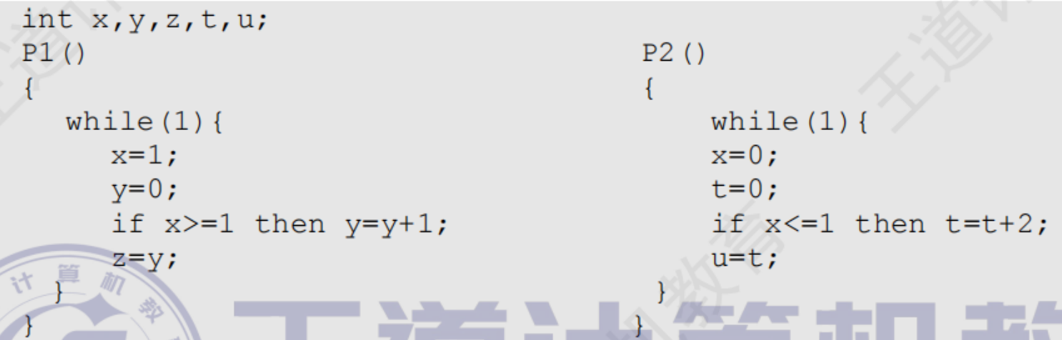② \(P_1\) 进程首先进入 if 条件语句,因此获得了 y 的互斥访问权, \(P_2\) 被阻塞;