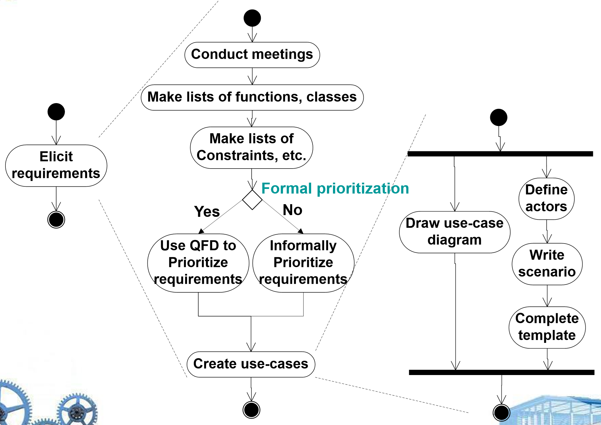 - 说明:规格可以采用多种形式——书面文档、模型、形式化规范、用例/用户场景或原型。没有单一“正确”格式,取决于项目与读者。
