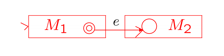 - 将 \(N(S)\) 的接受状态的所有出边转移到 \(N(T)\) 的开始状态上,然后将 \(N(S)\) 的接受状态和 \(N(T)\) 的开始状态用一条 \(\epsilon\) 转换连接起来。(或者更简单地,将\(N(S)\)的接受状态与\(N(T)\)的开始状态合并)。