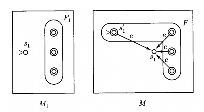 - 从 \(N(S)\) 的接受状态画一条 \(\epsilon\) 转换到新的接受状态(结束循环)。