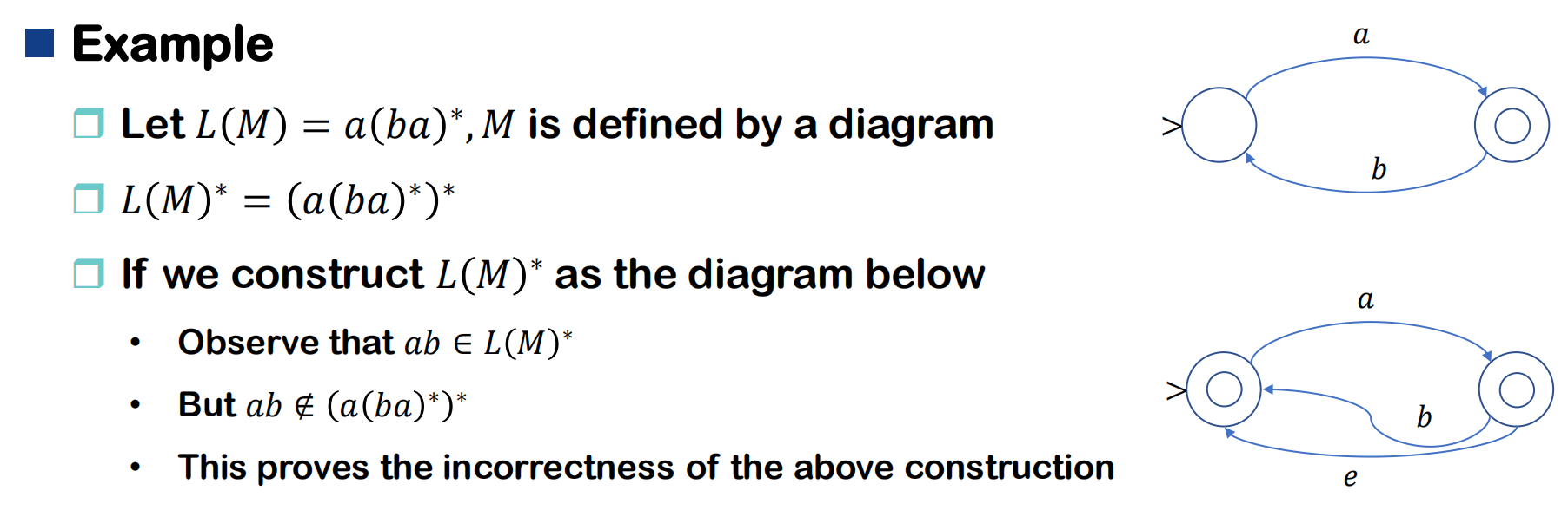 - \(\epsilon\) is accepted if the start state is an accepting state.