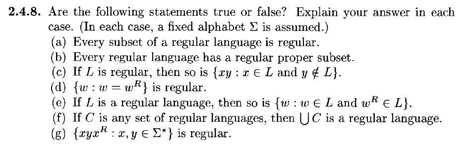 (c) 如果 L 是正则的, 那么 {xy | x ∈ L, y ∉ L} 也是正则的。