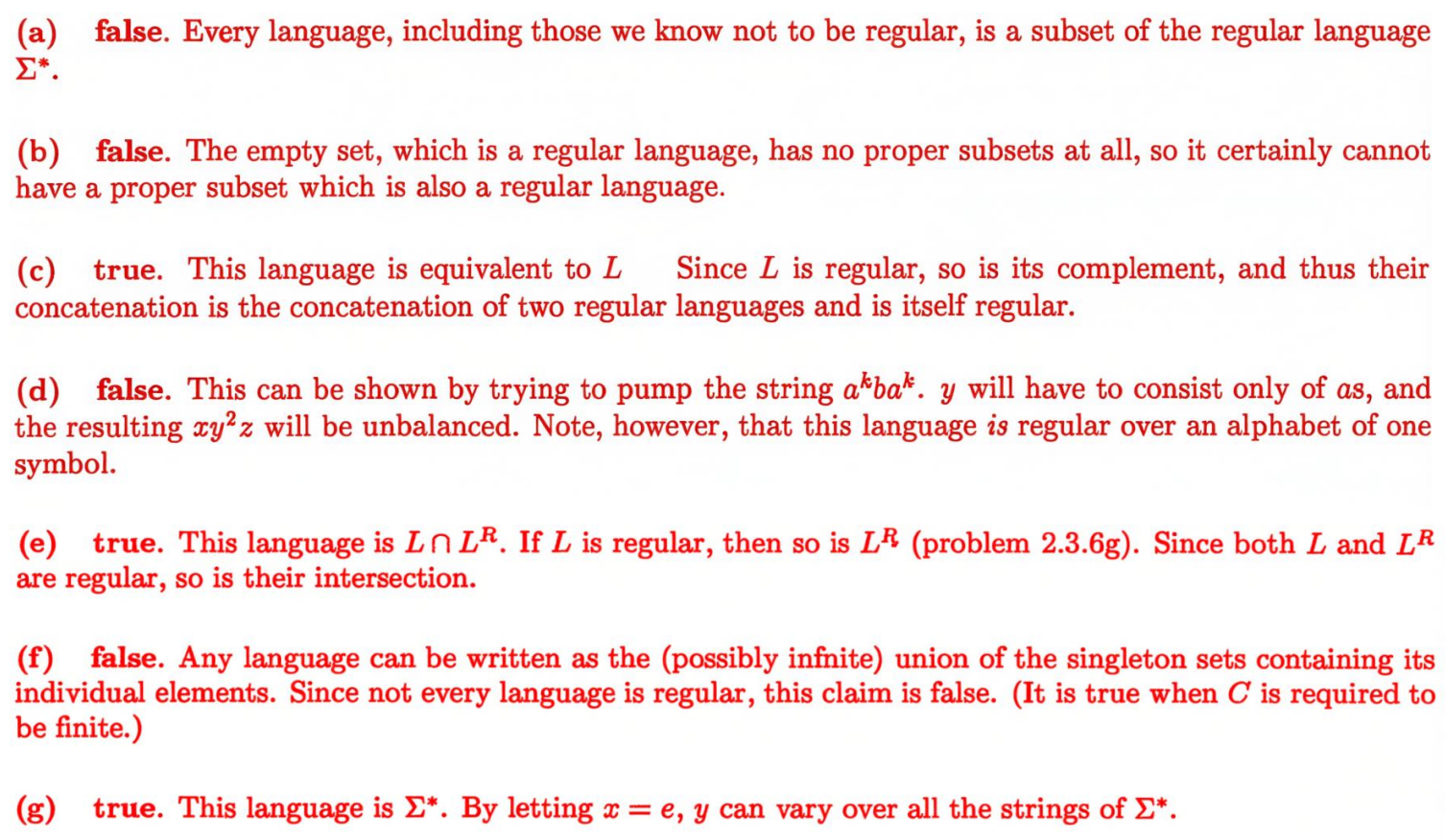 假 (False)。这就是泵引理部分的第一个例子(偶数长度的回文),我们已经证明了它不是正则的。
