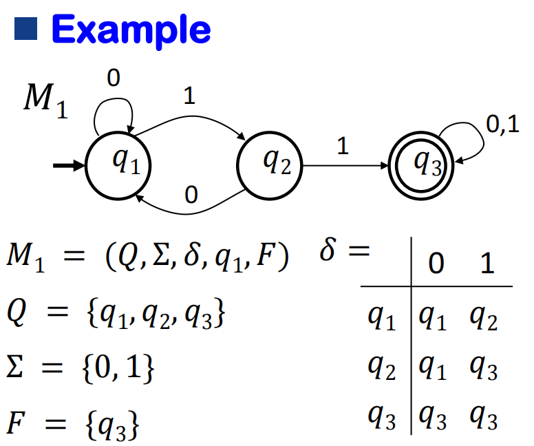 - \(\delta: K \times \Sigma \rightarrow K\) is the transition function