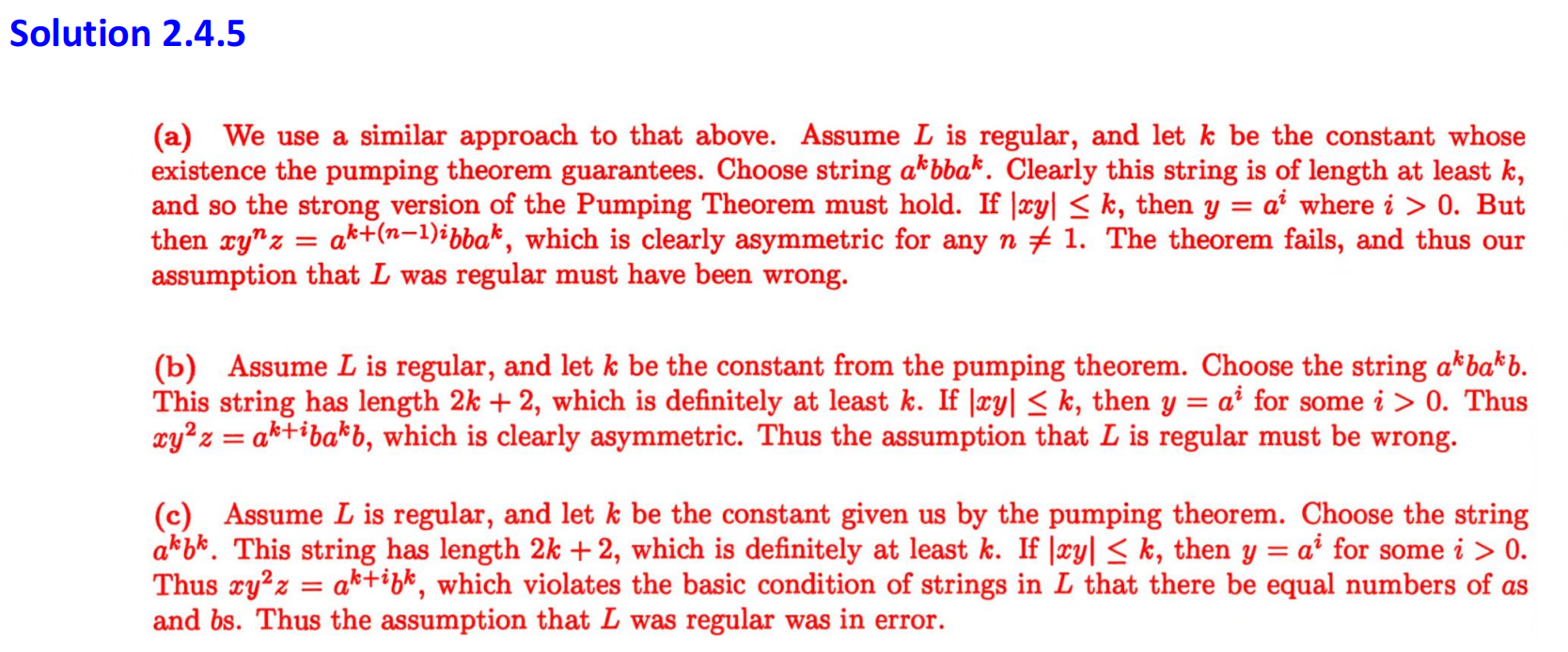 b(ab)^(k-1)或(ab)^(k-1)a这种“不平衡”的形式,我们向下泵 (\(i=0\))。移除y会破坏(ab)或(ba)的交替结构,使得字符串不再能被(ab)^*(ba)^*的形式所描述,因此也不属于 \(L'\)