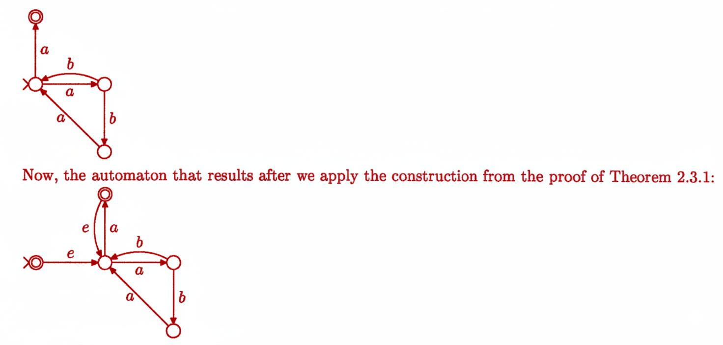 - 如果开始状态有任何进入的转换,则创建一个新的开始状态,并用 \(\epsilon\) 转换连接到旧的开始状态。