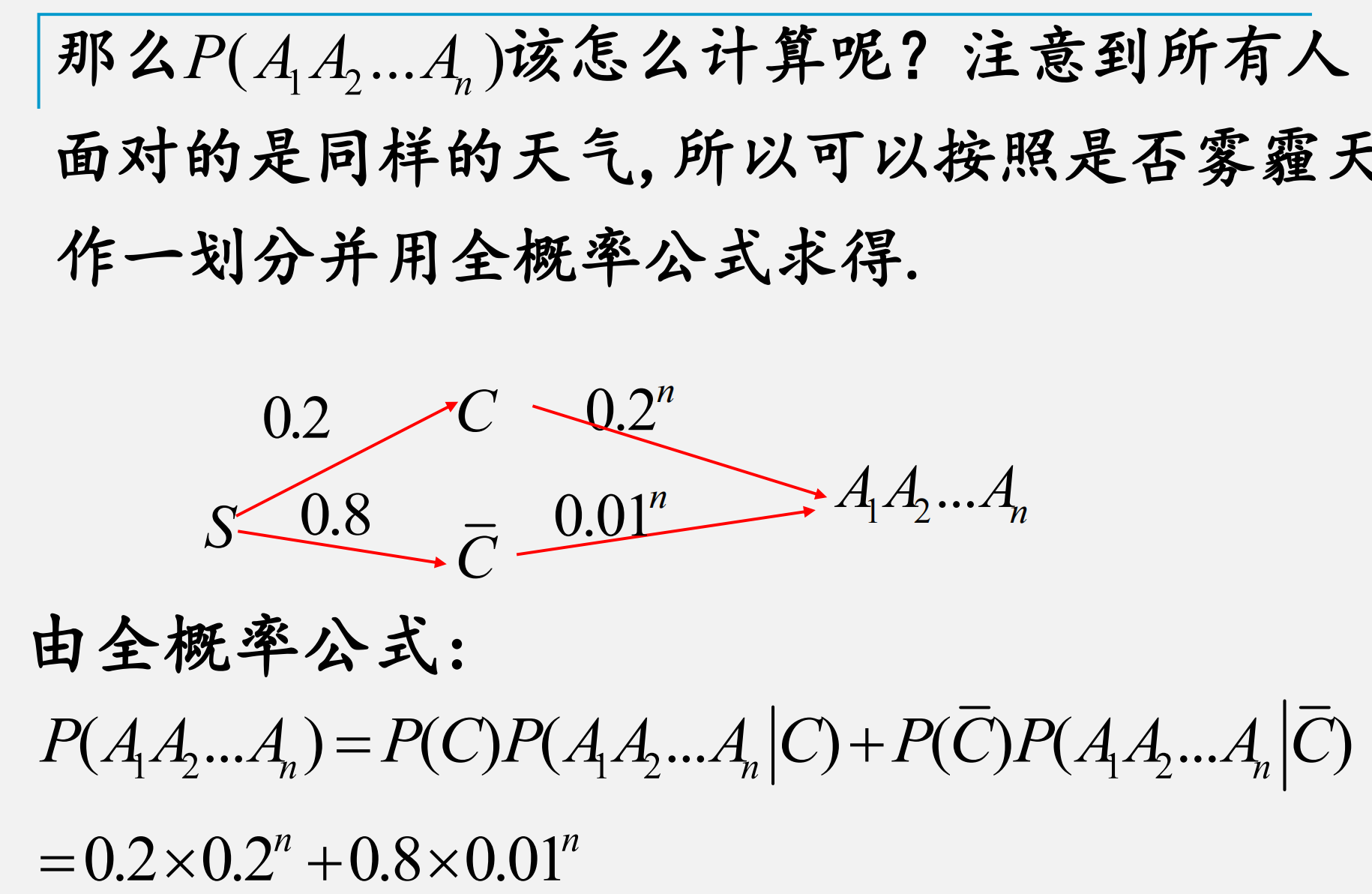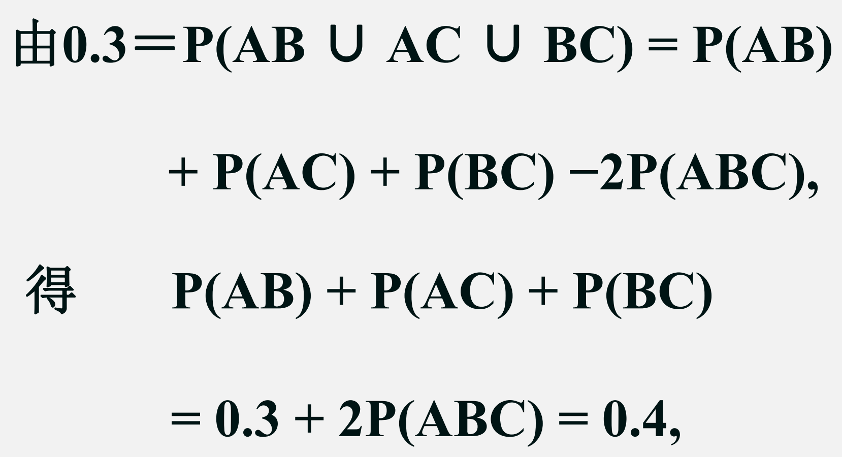 如果同时还满足:\(P(ABC)=P(A)P(B)P(C)\) 则称事件 A,B,C相互独立。