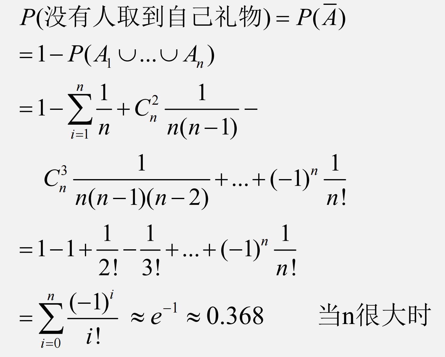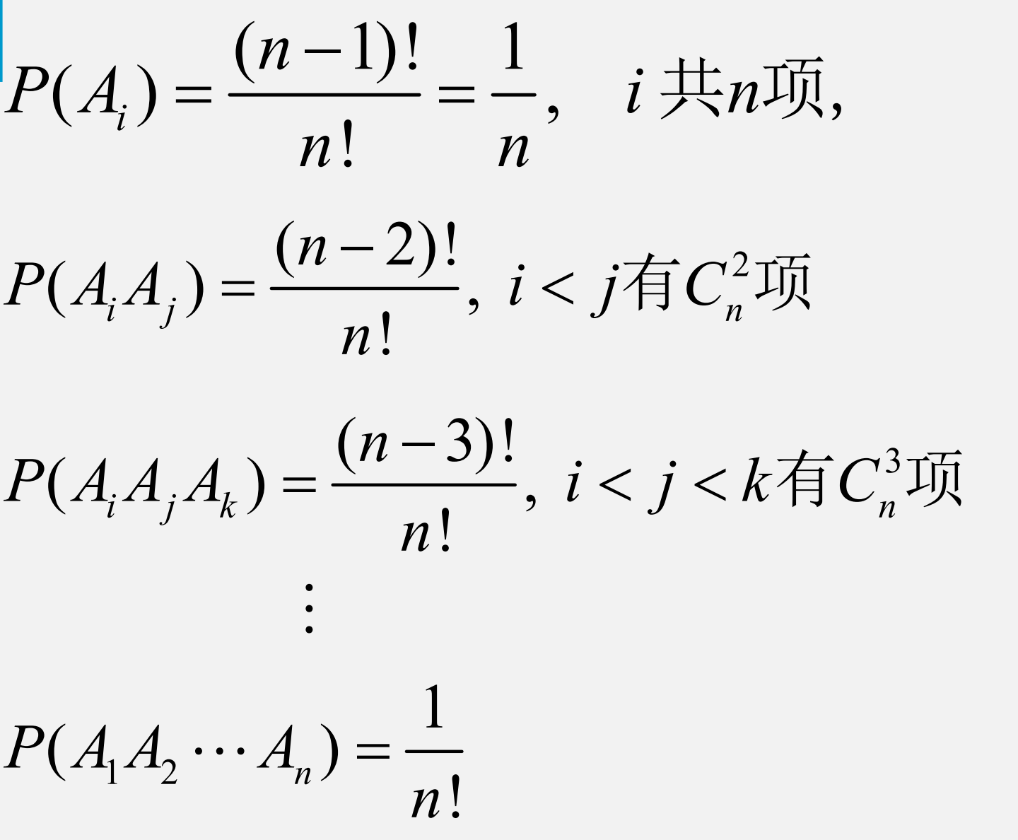 - 概率的加法公式:P(A∪B) = P(A)+P(B)−P(AB) ; 推广即容斥原理;