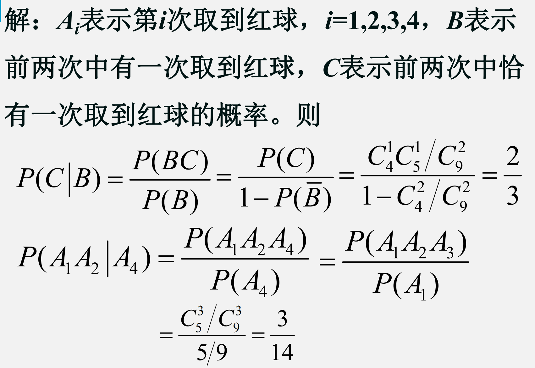 (2)已知第4次取到红球,求第1,2次也取到红球的概率。