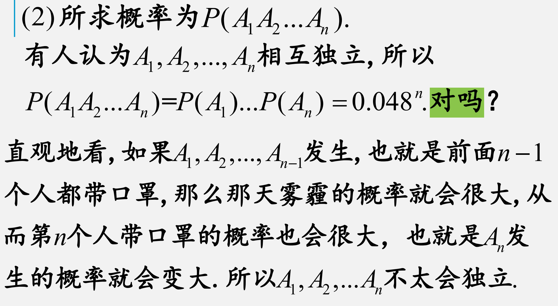 - 注意: \(\text{相互独立} \rightarrow \text{两两独立}\) ,但是, \(\text{两两独立} \nrightarrow \text{相互独立}\)