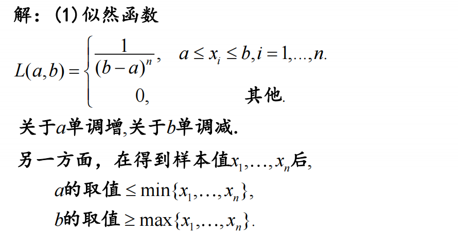设总体 \(X\) 服从均匀分布 \(U(a,b)\) ,其中 \(a\) 和 \(b\) 均未知,\(X_1,\dots,X_n\) 为样本
