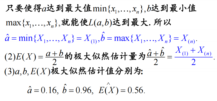 求 \(a\) , \(b\) , \(E(X)\) 的极大似然估计值.